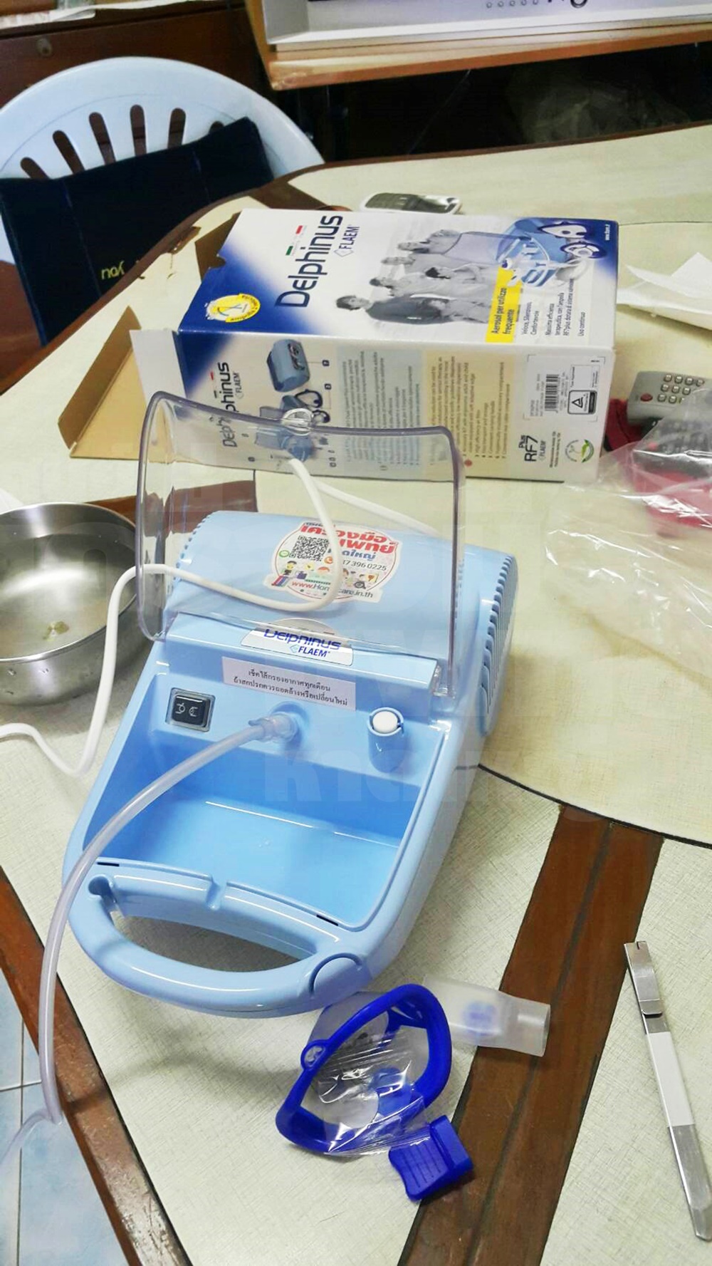 ส่งติดตั้งสาธิตถึงเตียงผู้ป่วย เครื่องพ่นละอองยา Flaem รุ่น Delphinus ผลิตภัณฑ์จากประเทศอิตาลีค่ะ เครื่องพ่นละอองยาขยายหลอดลม สำหรับผู้ป่วยโรคหอบหืด ถุงลมโป่งพองและโรคอื่น ๆ ในระบบทางเดินหายใจ เข้ามาเลือกชมสินค้าที่ร้านได้ค่ะ เครื่องพ่นยามีหลายรุ่น